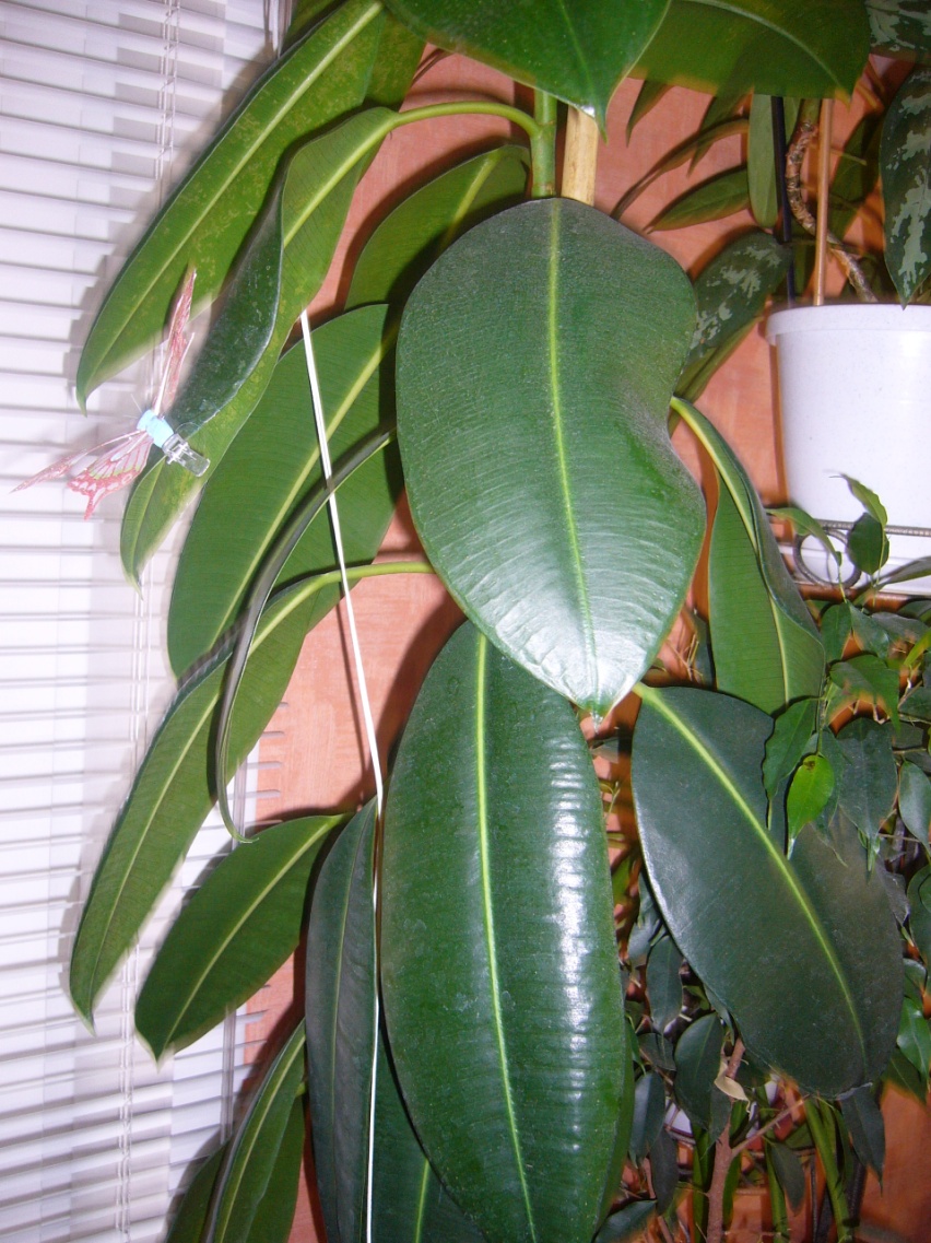 ФикусФикус Фикус является неприхотливым растением, благодаря этому в последнее время он очень популярен. Фикус представляет из себя дерево до 2 м высотой или лиану. В природных условиях вырастает до 20 м. Ствол фикуса плотный и толстый, кора коричневого цвета, опоры для растений и цветов не нужны. Латинское название: Ficus. Род растений из семейства тутовые (Moraceae). Известно более 1500 видов. В зависимости от сорта листья фикуса могут быть как крупными, так и мелкими. Каждый лист имеет четко выделяющуюся центральную жилку, которая переливается на солнце. Листовая пластинка фикуса имеет светло – зеленый или темно – зеленый цвет, мясистая, может быть опушенная. Иногда на листьях присутствуют белые, красные или желтые пятна, края могут быть волнистыми.