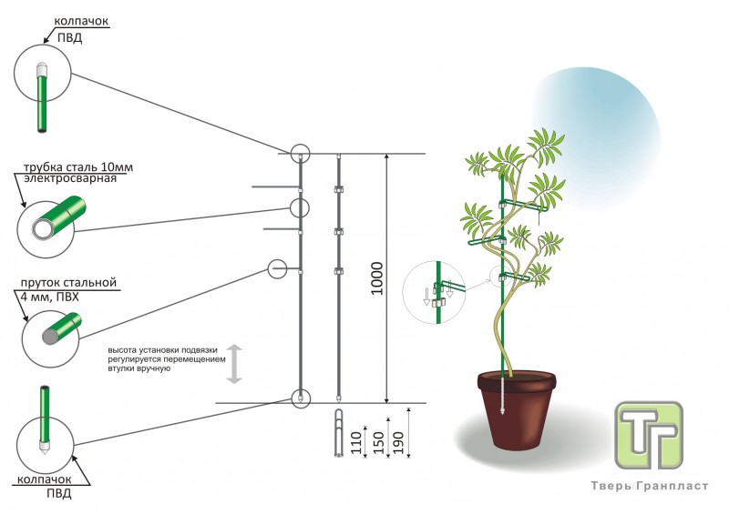 Материал подвязки: пруток стальной Ø 4 мм, покрытие ПВХ